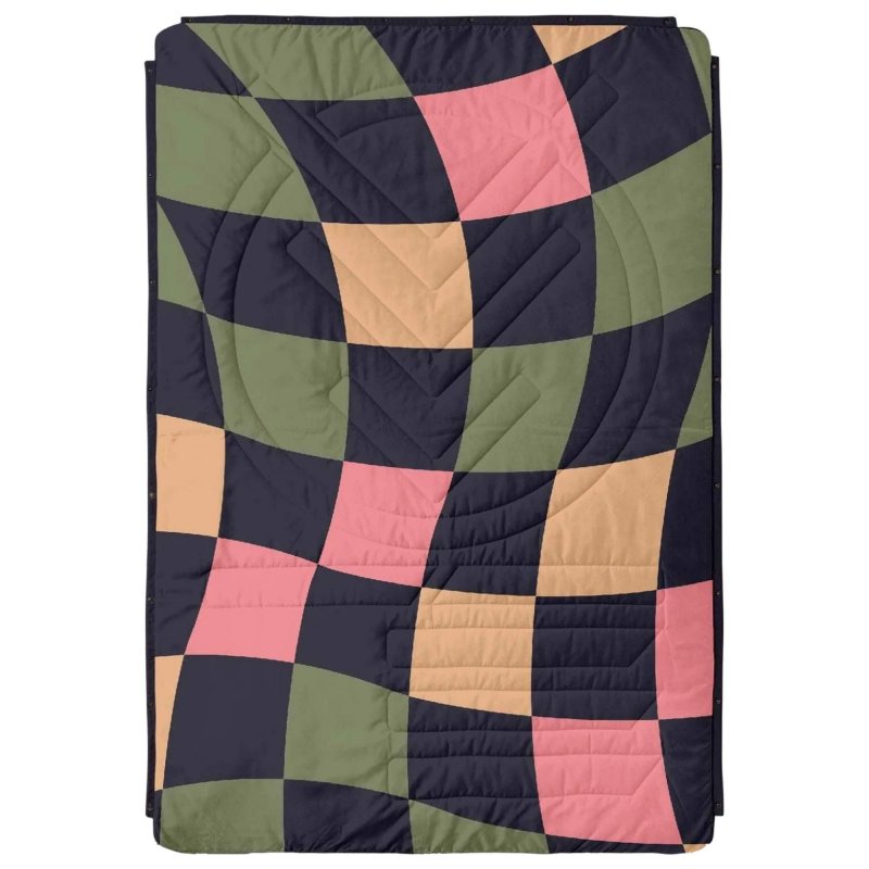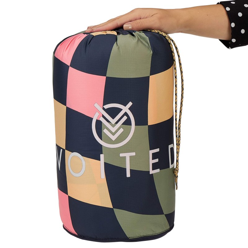 Warme Outdoordecke aus recyceltem Polyester, die du dank seitlicher Druckknöpfe zum Schlafsack und Kopfkissen umbauen oder auch als Mantel tragen kannst.