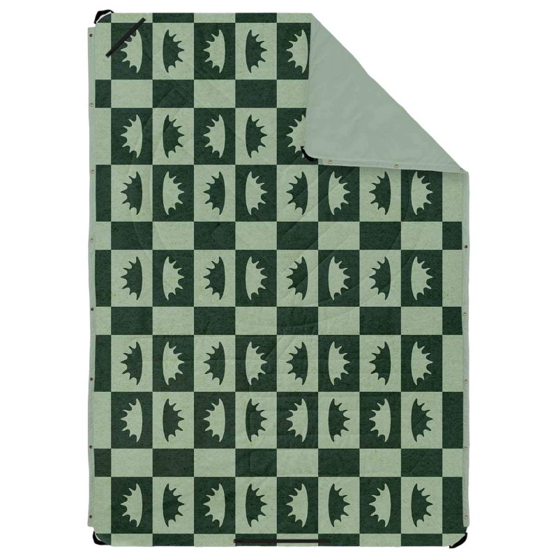Die Voited Picnic Blanket verfügt über seitliche Druckknöpfe, mit denen du mehrere Decken miteinander verbinden kannst. Alternativ lässt sich die Decke auch mit der gegenüberliegenden Seite zusammenknöpfen und überwerfen. So entsteht entweder ein Sichtschutz zum Umziehen oder ein regendichtes Cape, das dich trocken vom Strand nach Hause bringt.