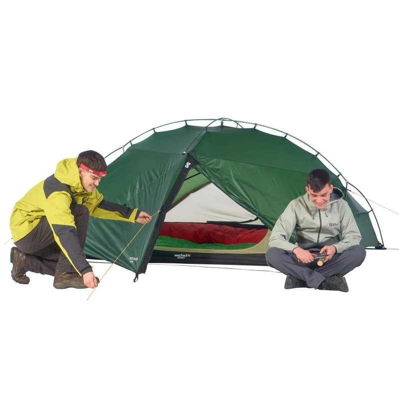 Das Donna ist die logische Erweiterung des sehr erfolgreichen 1-Personen-Modells Bella. Der Aufbau ist identisch, das Donna bietet jedoch mehr Platz im Innenzelt und einen zweiten Ausgang.
