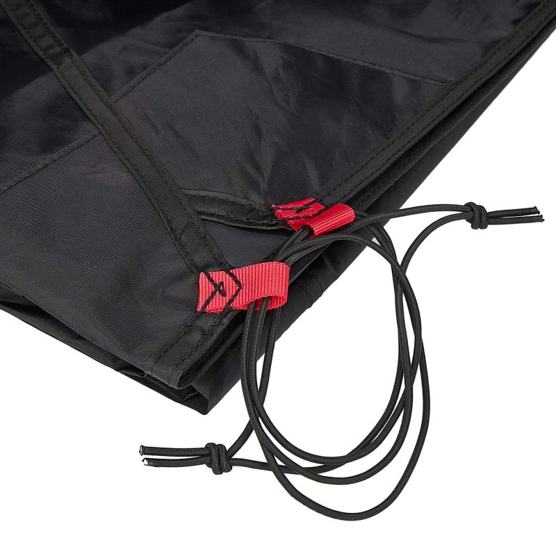Die Unterlage ist passend für das gesamte Zelt, einschließlich der Apsis, und schützt den Zeltboden vor Schmutz, Beschädigungen und kondensierender Bodenfeuchtigkeit.