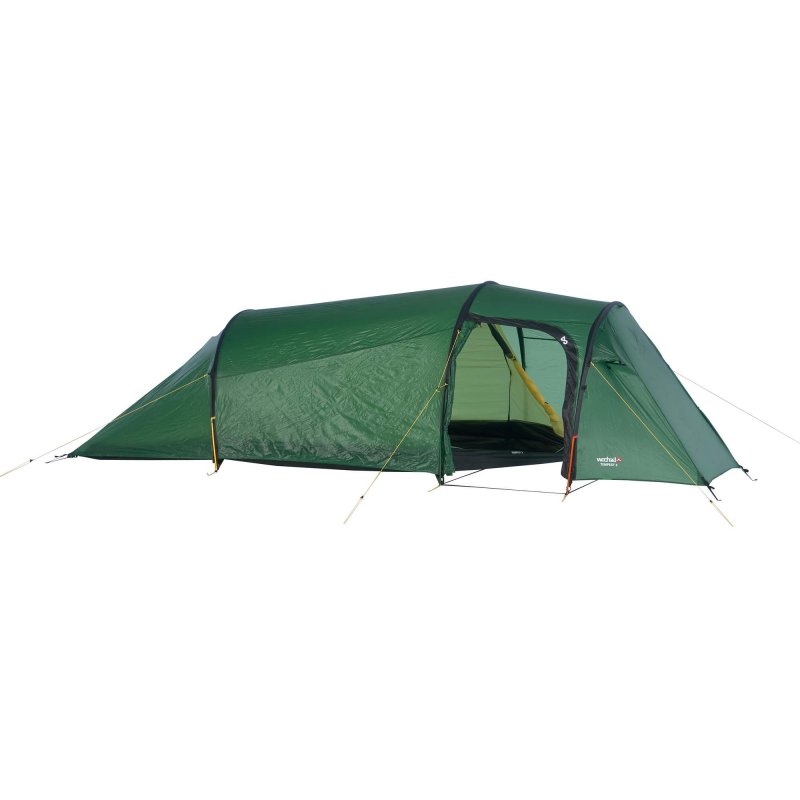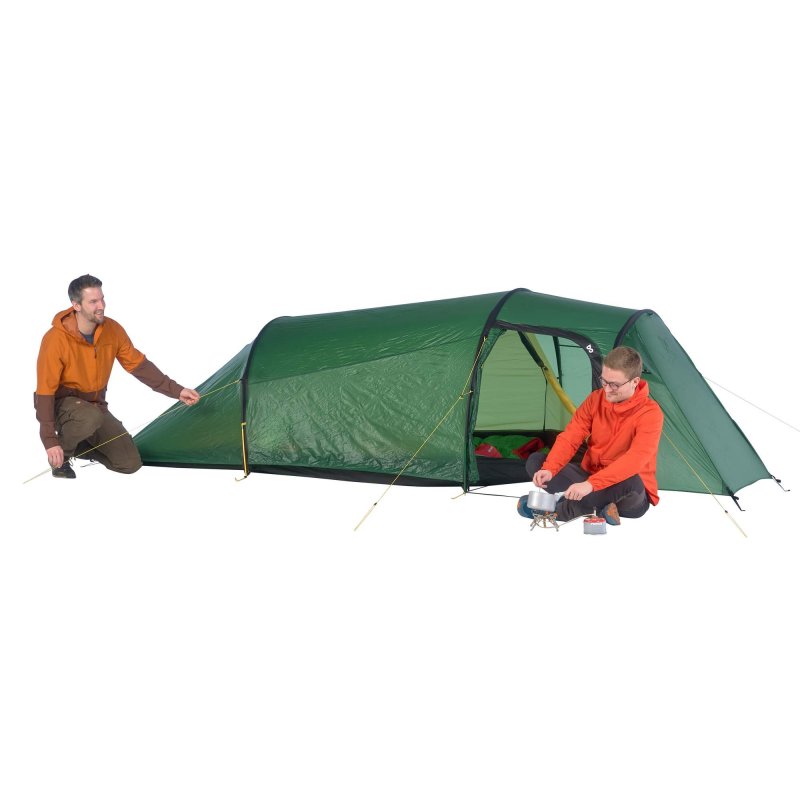 Das Tempest 2 ist ein sehr leichtes Tunnelzelt mit großem Platzangebot. Durch das asymmetrische Innenzelt eignet es sich auch für sehr große Personen über 2 m.