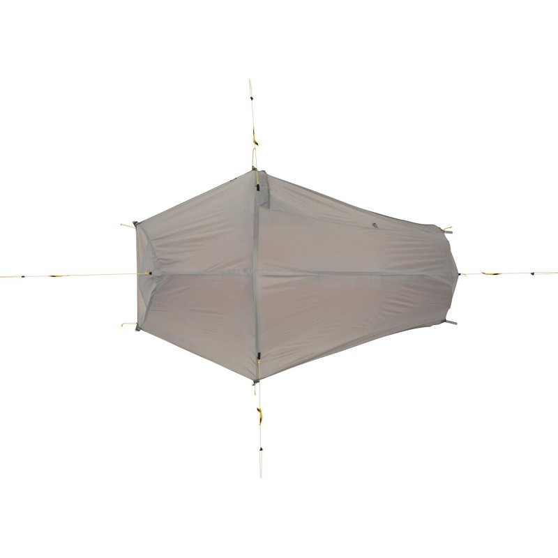 Für alle, die es noch etwas leichter wollen: Es besteht auch die Möglichkeit, das Außenzelt mit der separat erhältlichen Zeltunterlage aufzubauen und das Innenzelt zu Hause zu lassen. So entsteht ein ultraleichter Wetterschutz.
