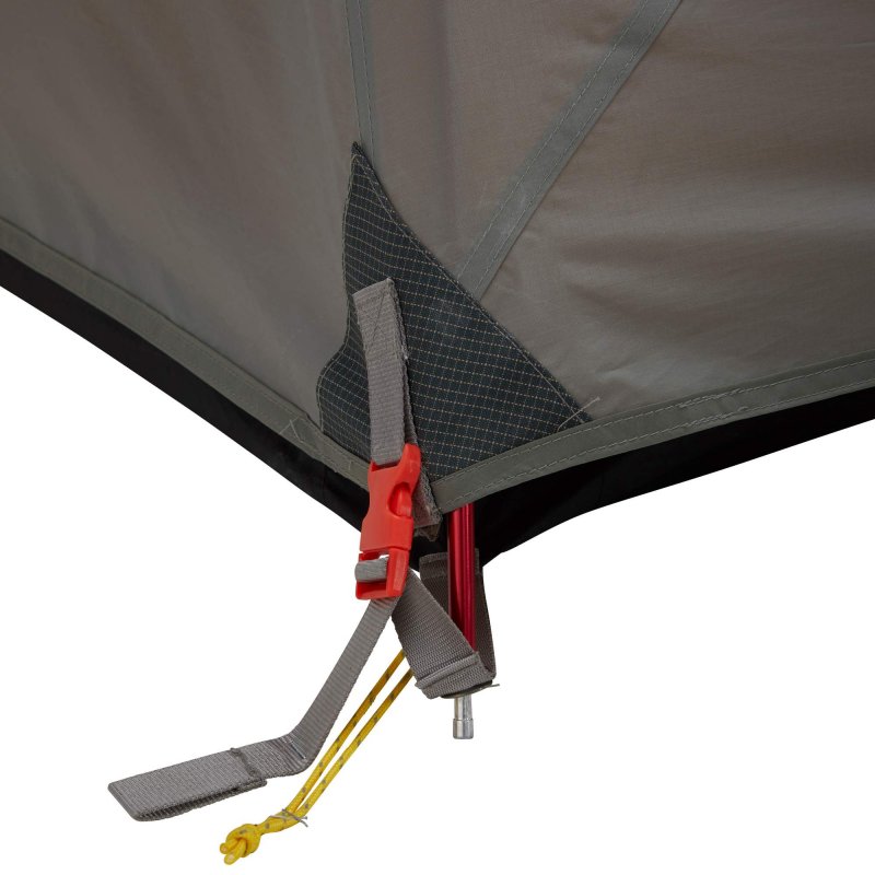 Du kannst das Kuppelzelt einfach und zügig aufstellen. Dabei wird das Innenzelt zuerst aufgebaut und mit Clips am Gestänge befestigt. Jetzt nur noch das Außenzelt überwerfen und mit den Blitzverschlüssen am Innenzelt befestigen. Für eine einfache Zuordnung ist ein Blitzverschluss farbig markiert. Fertig ist dein Zuhause für die nächste Nacht.