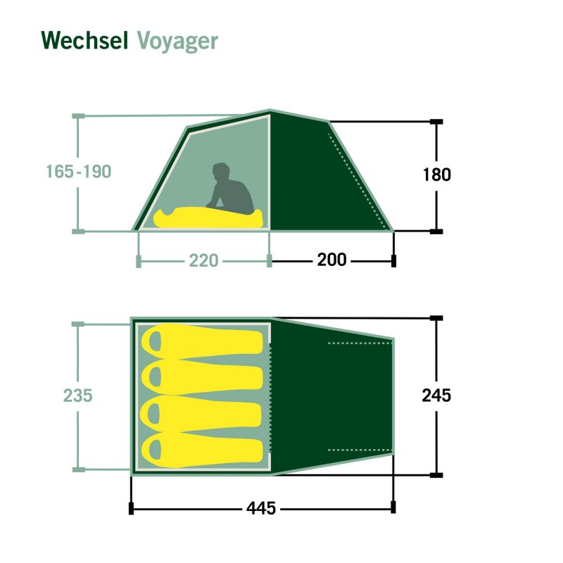 Durch die außen liegenden und farblich markierten Gestängekanäle ist ein müheloser Aufbau selbst von nur einer Person möglich. 22 Abspannpunkte fixieren das Voyager sicher am Boden, sodass auch starker Wind dem Zelt nichts anhaben kann.