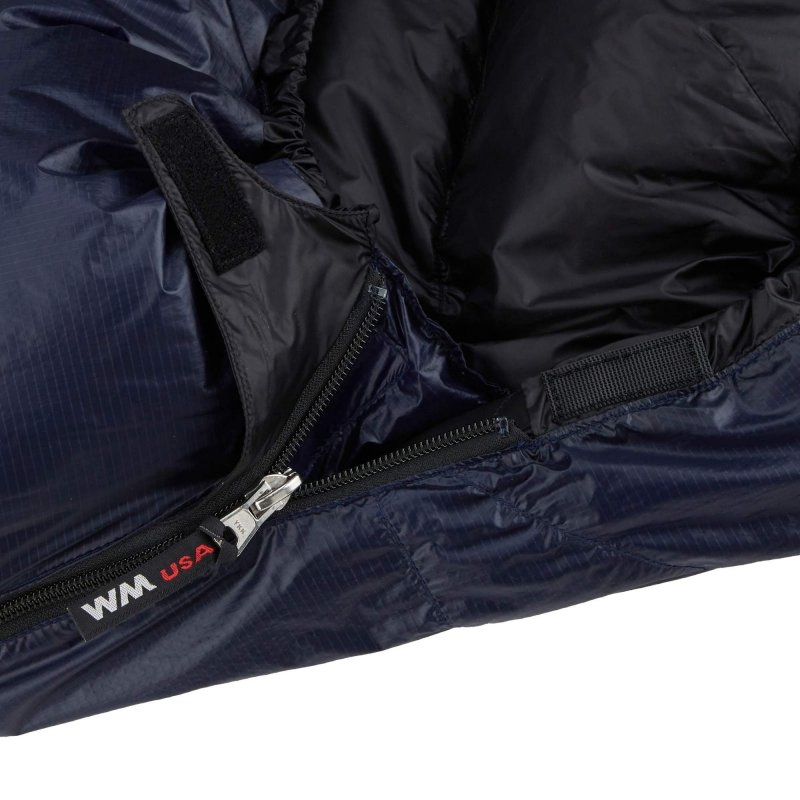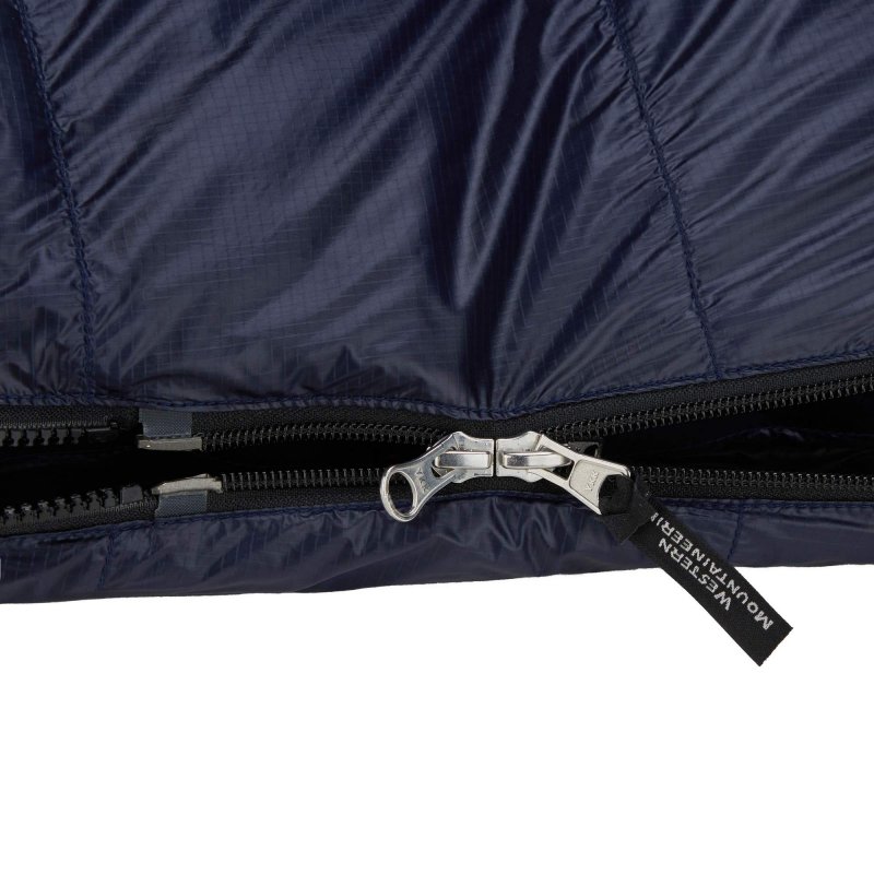 Western Mountaineerings Extremelite-Serie zeichnet sich durch ultraleichte Materialien aus. Das Außenmaterial aus 12D Ripstop Nylon ist daunendicht. Innen kommt 15D Nylon Taffeta zum Einsatz. Es ist herrlich weich und fühlt sich auch direkt auf der Haut angenehm an. Durch die schwarze Farbe heizt es sich schnell auf und trocknet dadurch beim Auslüften schneller.