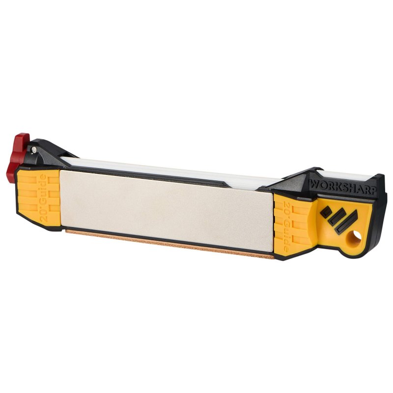 Der Guided Field Sharpener ist ein kompakter Messerschärfer mit Diamant- und Keramikoberflächen in verschiedenen Körnungen und Formen. Winkelführung und ein Abziehleder gehören mit zur Ausstattung.
