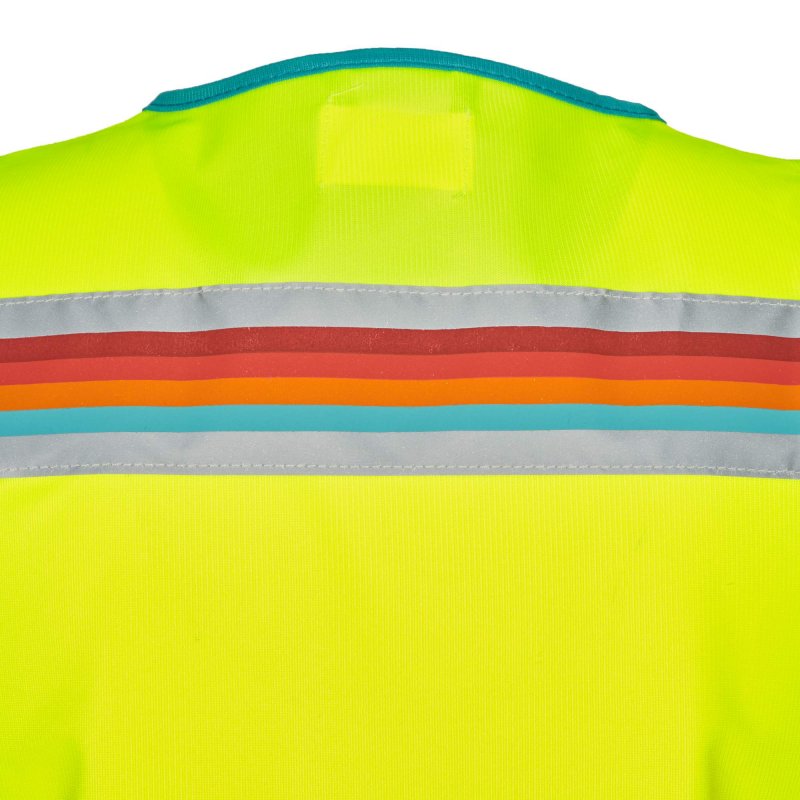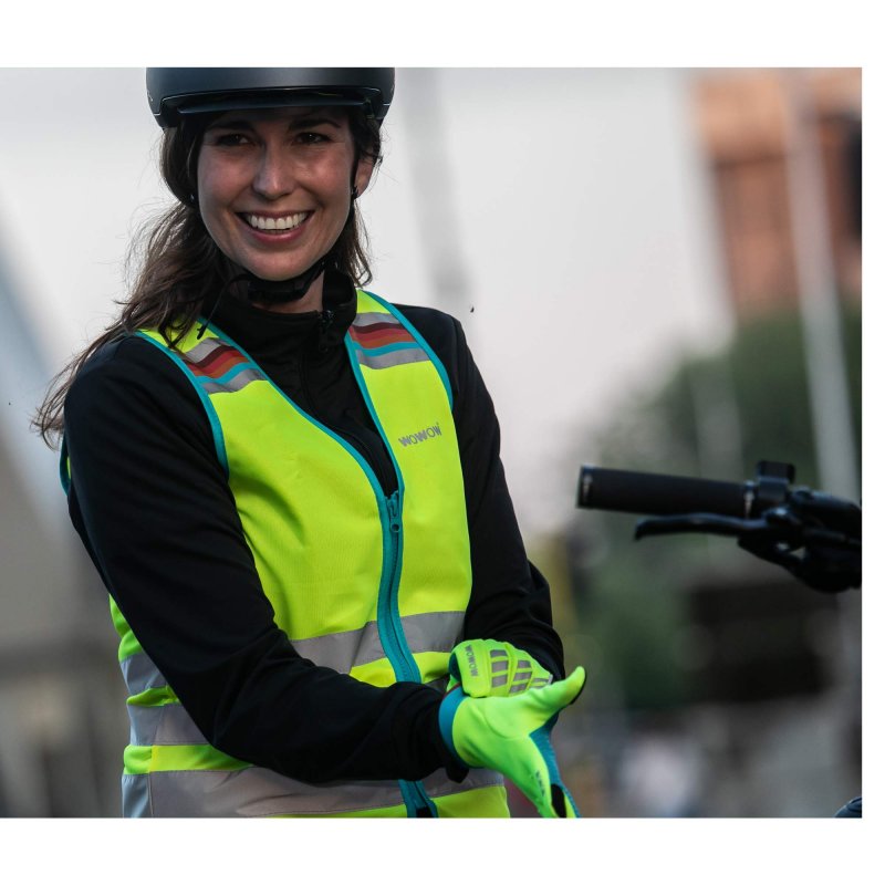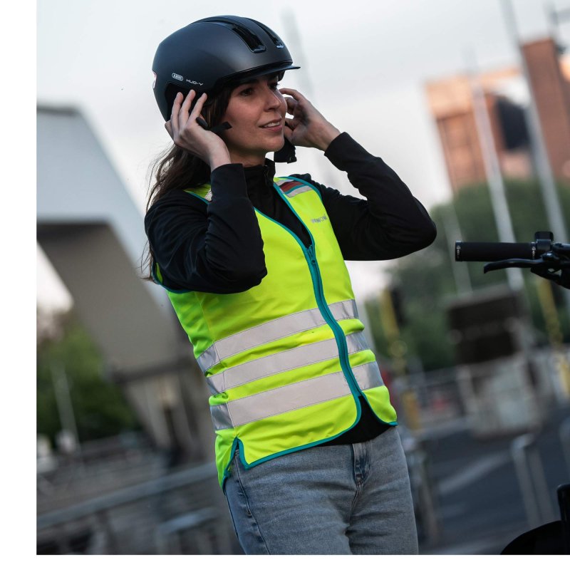 Hier gibt's eine Reflexweste, die über den Sicherheitsaspekt hinausgeht und eine modische Komponente ins Spiel bringt: Der etwas taillierte Schnitt und die Farbgestaltung kann sich super sehen lassen.