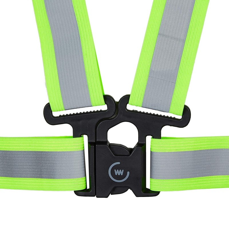 Dieser Gurt erhöht deine Sichtbarkeit enorm und ist schnell angelegt. Mit vier Schnallen stellst du die Hüftweite und die Länge der Träger passgenau ein, je nachdem, welche Jacke du drunter trägst.