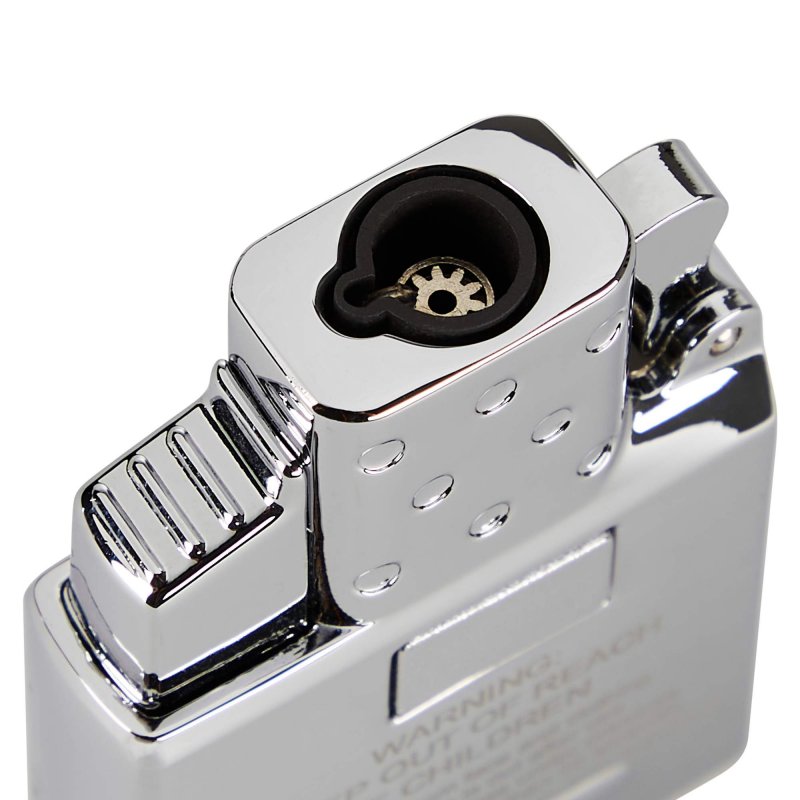 Schluss mit leeren Zippos! Im Gegensatz zum Benzineinsatz funktioniert der Single Torch Jet Flame Insert selbst nach langer Lagerdauer zuverlässig. Die Höhe der Flamme kannst du auf der Unterseite frei nach deinen Bedürfnissen einstellen. Eine Tankfüllung reicht dabei für 60,5 Sekunden Brenndauer (bei 2,5 cm Flammenhöhe).